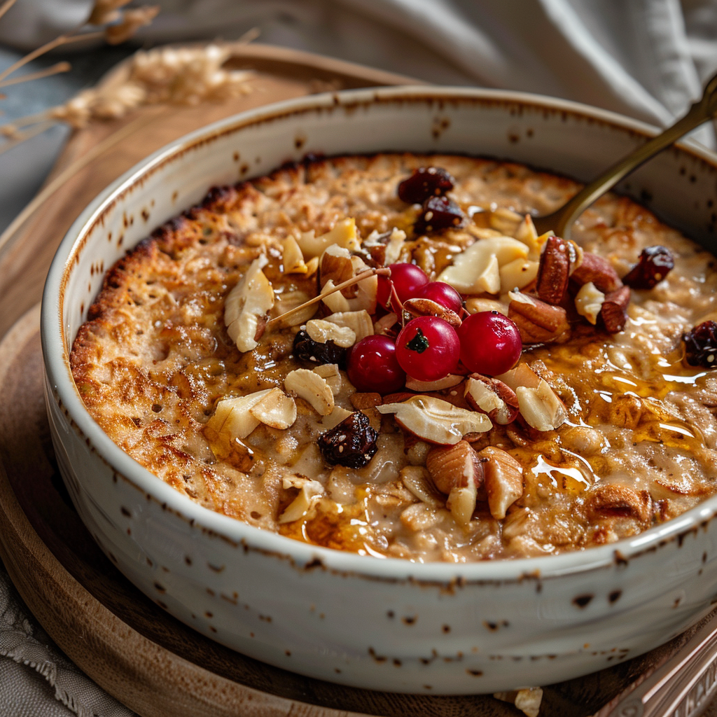 Viral baked oats are a one-pan baked breakfast dish that blends rolled oats, dairy, and sweeteners into a warm, custard-like casserole. The dish is baked to golden perfection and serves